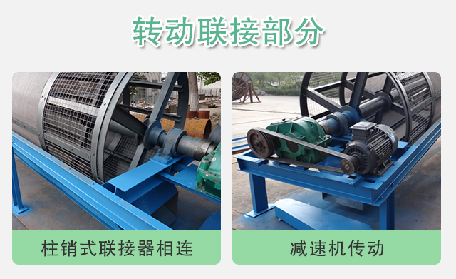 該部分均采用組合式篩網(wǎng),其由傳動(dòng)輪通過(guò)聯(lián)軸器,傳至主軸,該篩網(wǎng)安裝于焊接在主軸的滾籠上。物料從進(jìn)料端進(jìn)入,經(jīng)過(guò)滾籠中不斷回轉(zhuǎn),分級(jí),從下方出料口均勻流出,其有效的將成品與返料分離,從而降低勞動(dòng)強(qiáng)度。